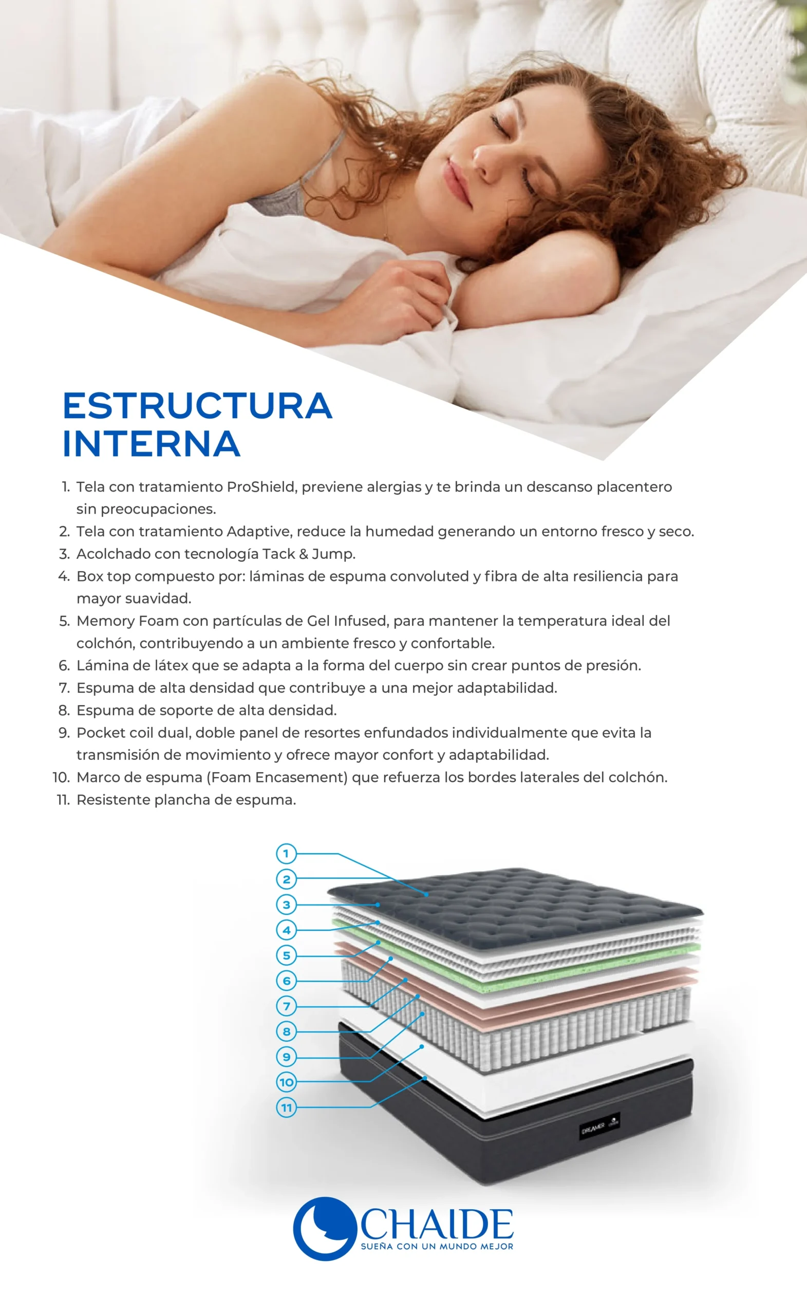 | Tamaño | 80 cm x 190 cm x 23 cm, 90 cm x 190 cm x 23 cm, 105 cm x 190 cm x 23 cm, 135 cm x 190 cm x 23 cm, 160 cm x 200 cm x 23 cm, 200 cm x 200 cm x 23 cm, Medidas especiales |