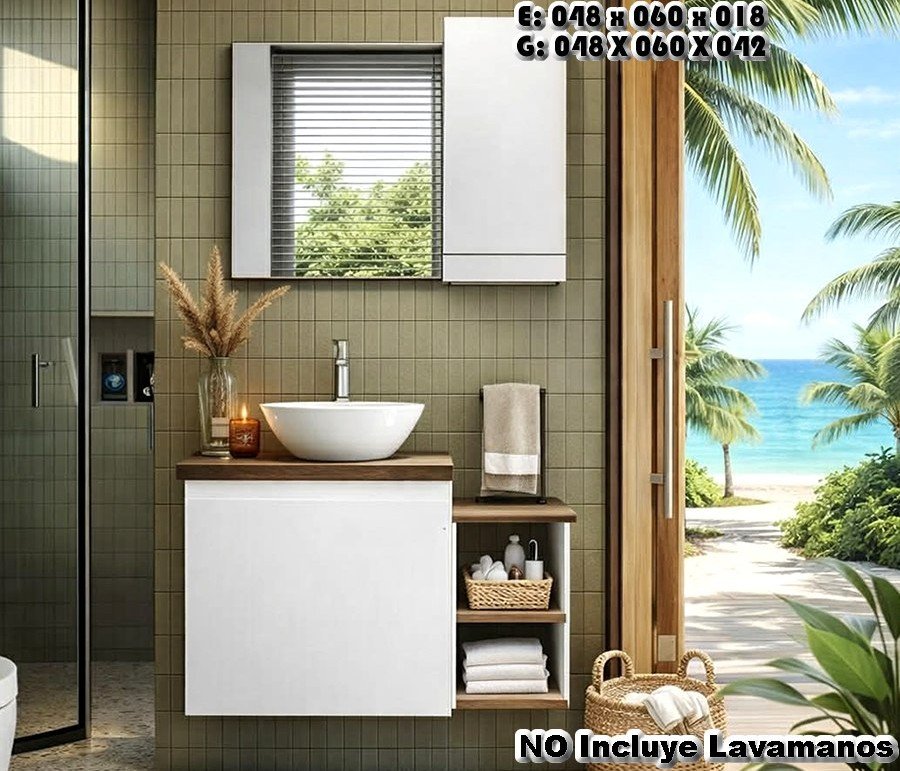 • Precio INCLUYE: MUEBLE DE BAÑO Y ESPEJO, (En algunos productos incluye el lavamanos, como indica en la imagen)